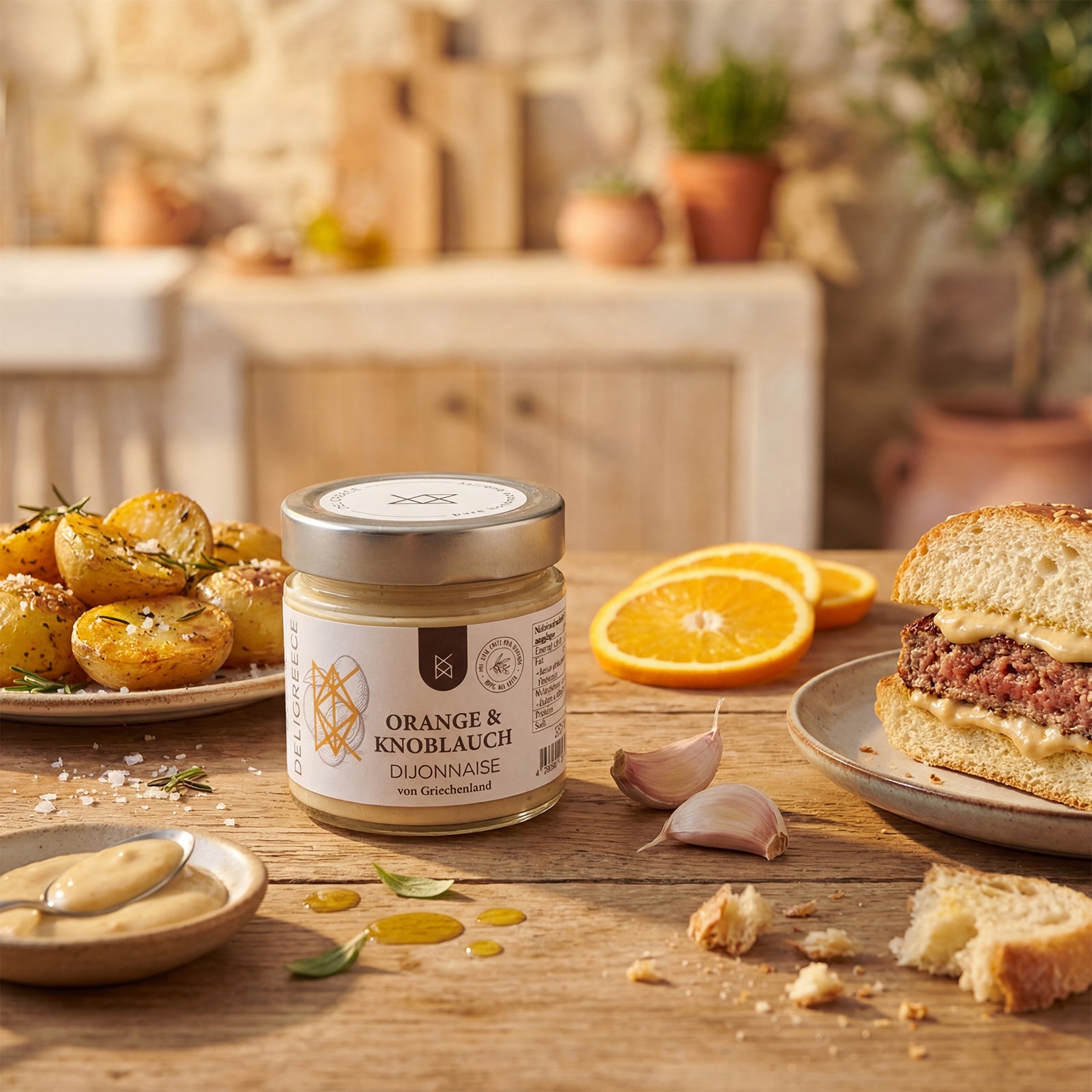 Unsere Deligreece-Mayonnaisen sind dafür gemacht, deinen Gerichten im Handumdrehen dieses „Wow, was ist das denn Leckeres?“ zu geben. Jede Sorte erzählt ihren eigenen Geschmacksmoment – mal pikant und würzig mit Chili & Knoblauch, mal tief und weich mit Röstknoblauch, mal frisch und mediterran mit Zitrone & Thymian oder fein und elegant mit Trüffel-Dijonnaise. Statt blasser Begleitung bekommst du eine cremige Basis, die Burger, Kartoffeln, Gemüse, Fisch oder Sandwiches sofort spannender macht – ohne dass du lange Saucen anrühren oder würzen musst.