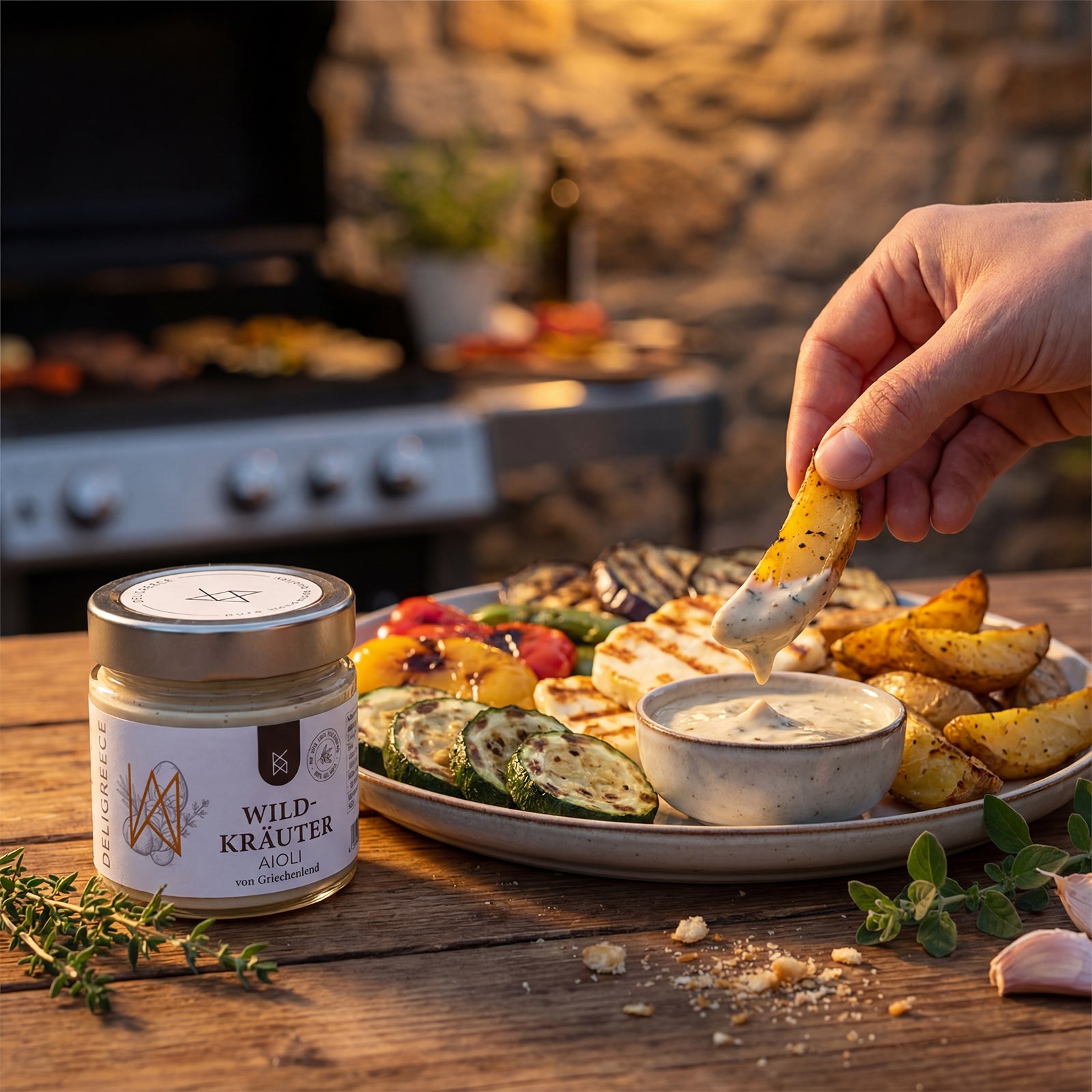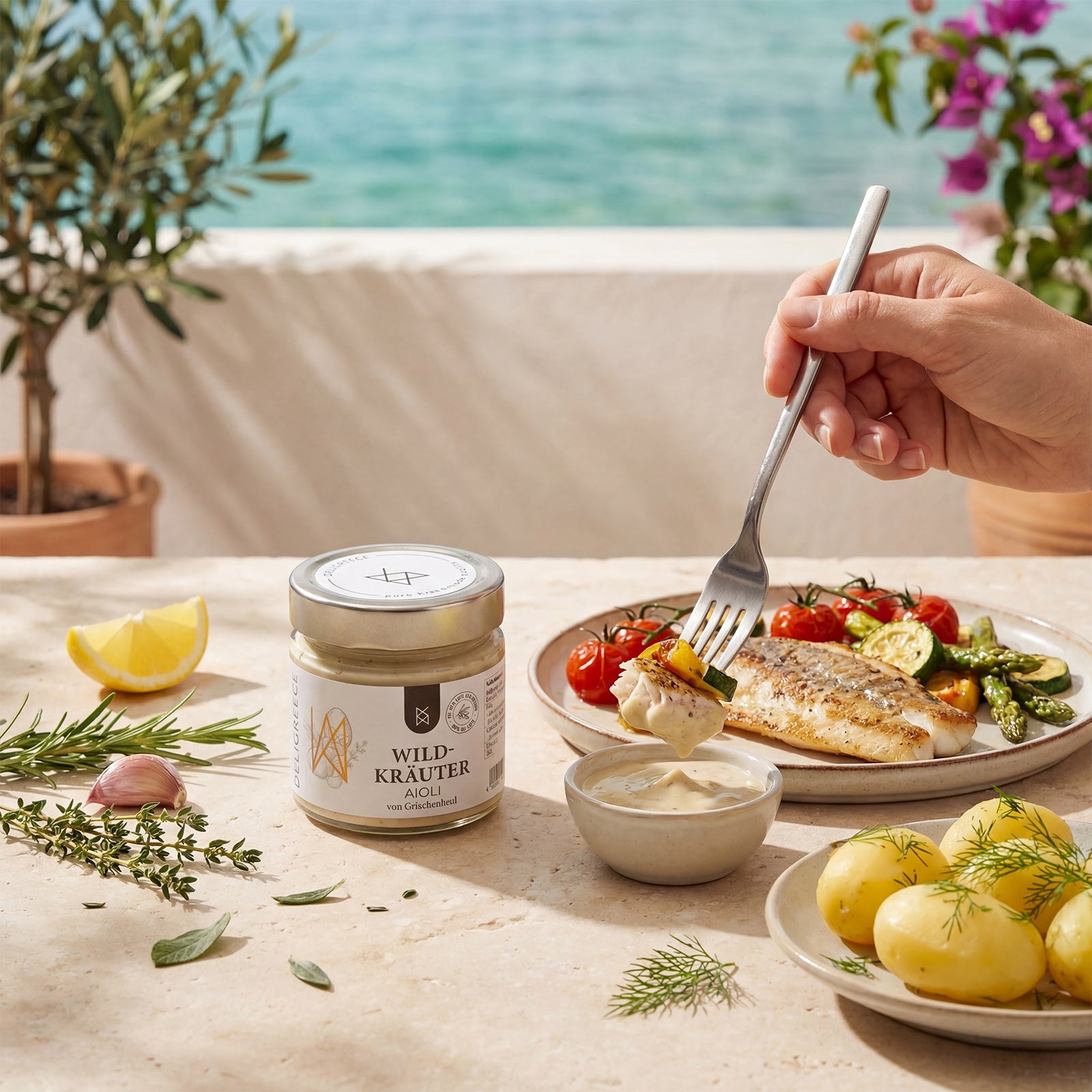 Alle Deligreece-Mayonnaisen entstehen nach eigenen Rezepturen in Griechenland. Verarbeitet werden 100 % griechische Zutaten – inklusive unserem extra nativen Olivenöl als Basis. Statt neutraler Industrieöle sorgt griechisches Olivenöl für eine runde, natürliche Textur und einen feinen mediterranen Charakter. So schmecken unsere Mayos nicht nur anders als Standardprodukte, sie bringen ein Stück griechische Küche direkt in deinen Alltag.